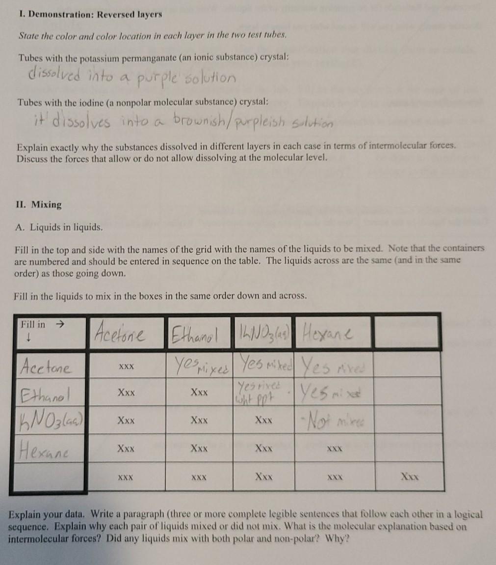 Solved Postlab Questions Referring To Your Observations In Part B Of The Data Table Predict Whether The Following Crystals Are Ionic I Or Nonpolar N Potassium Permanganate Lodine 2 Complete The Following General